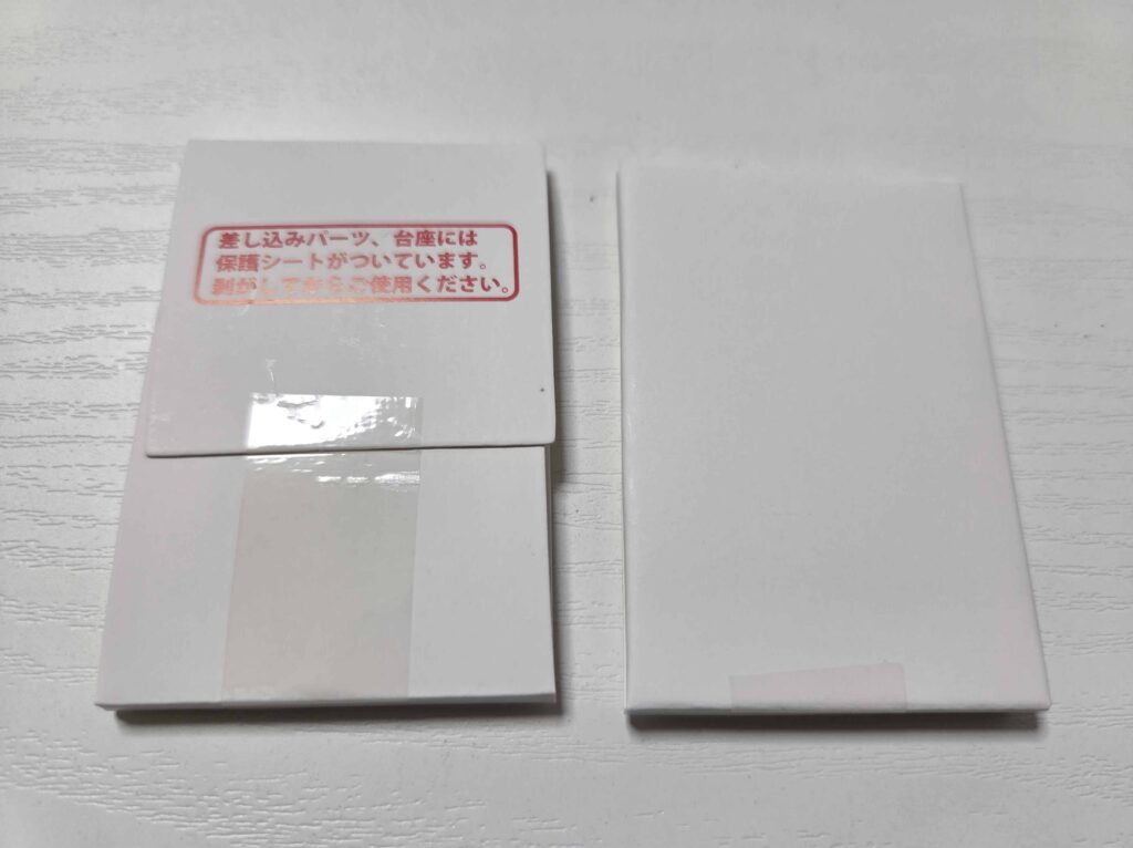 保護シールを付けたままだと厚みで入りにくくなるので、組み立て前にシールを外すことをおすすめします。