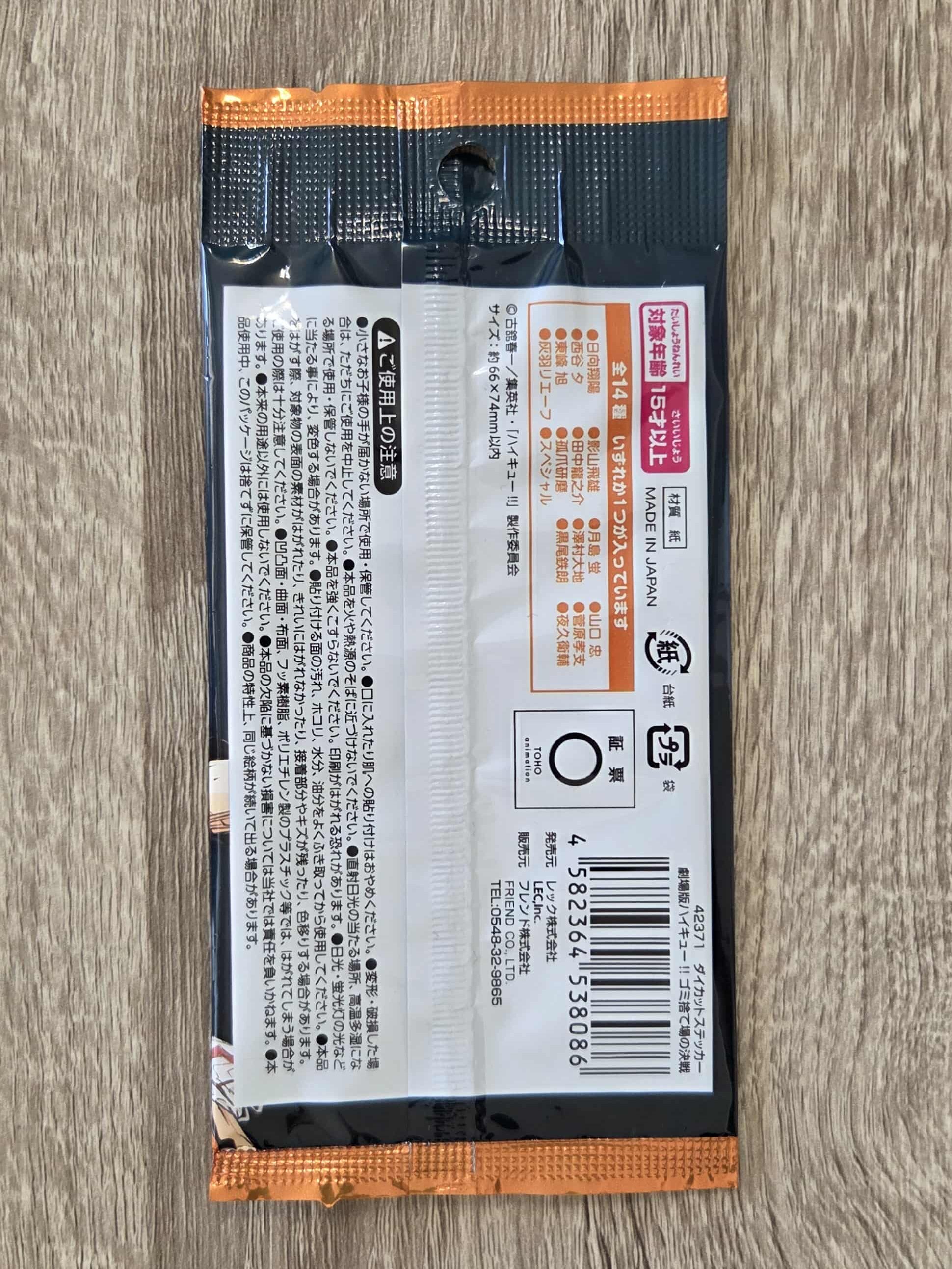 - 商品名:劇場版ハイキュー!! ゴミ捨て場の決戦 ダイカットステッカー(全14種)