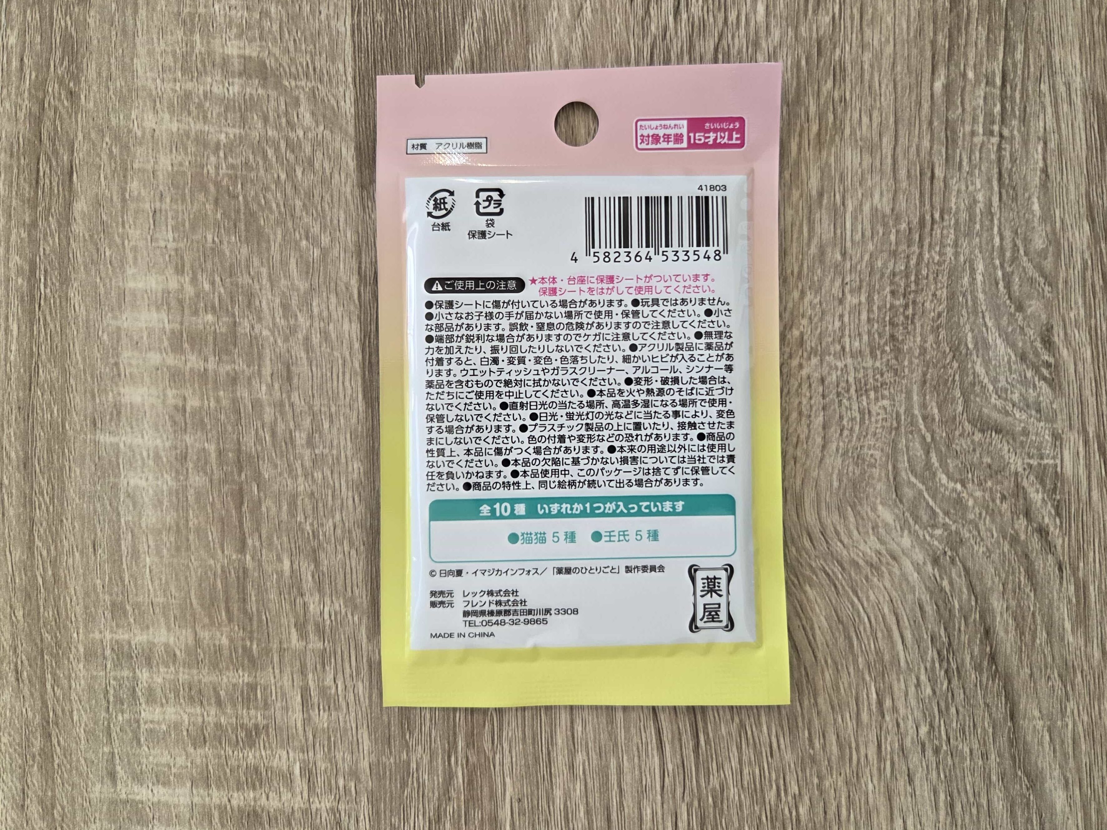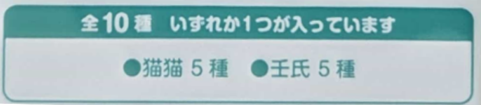 ラインナップは猫猫5種、壬氏5種の全10種類。出てくるキャラクターはこの二人だけなので、よほど運が悪くなければ二人を揃えやすい構成です。