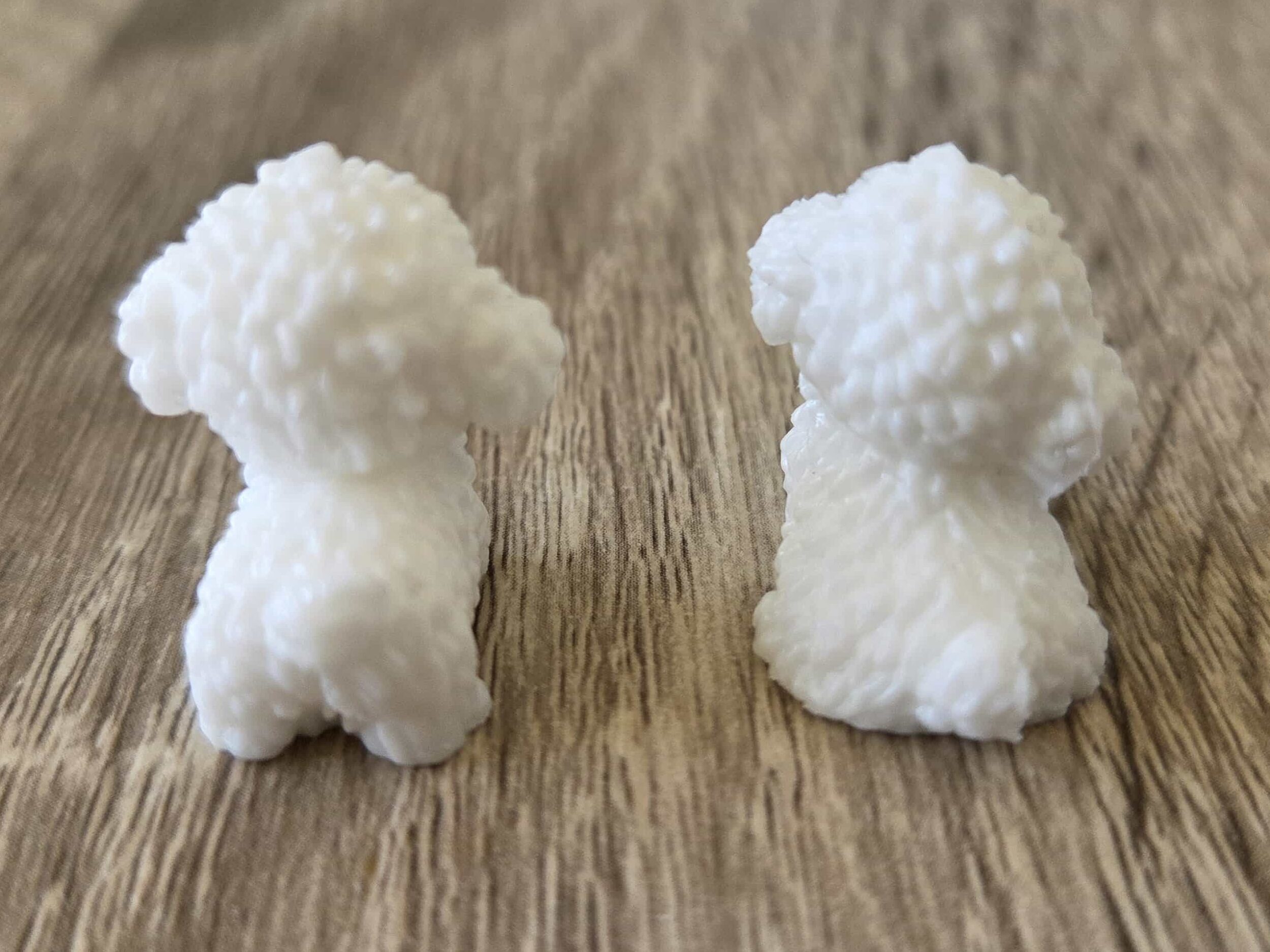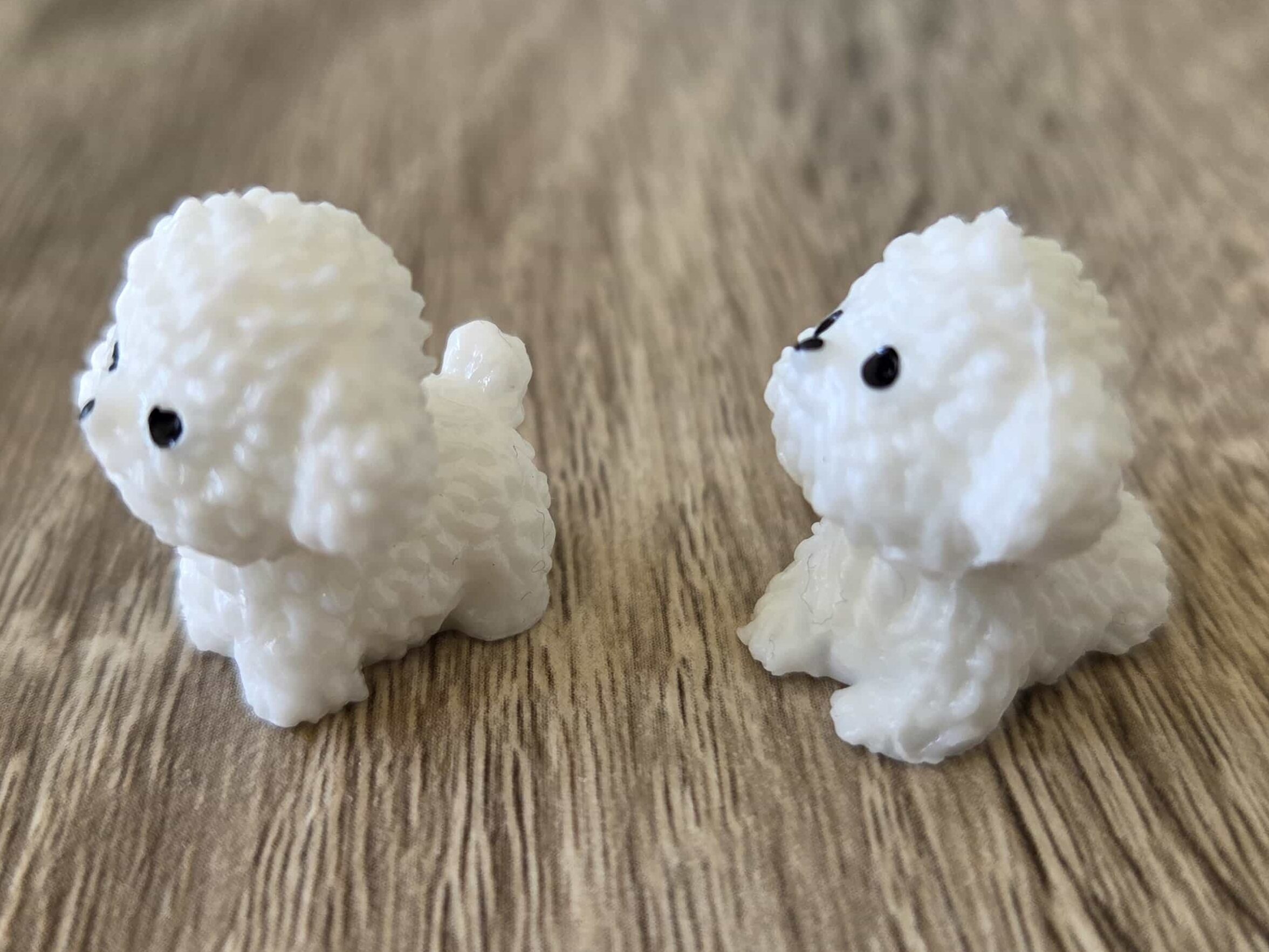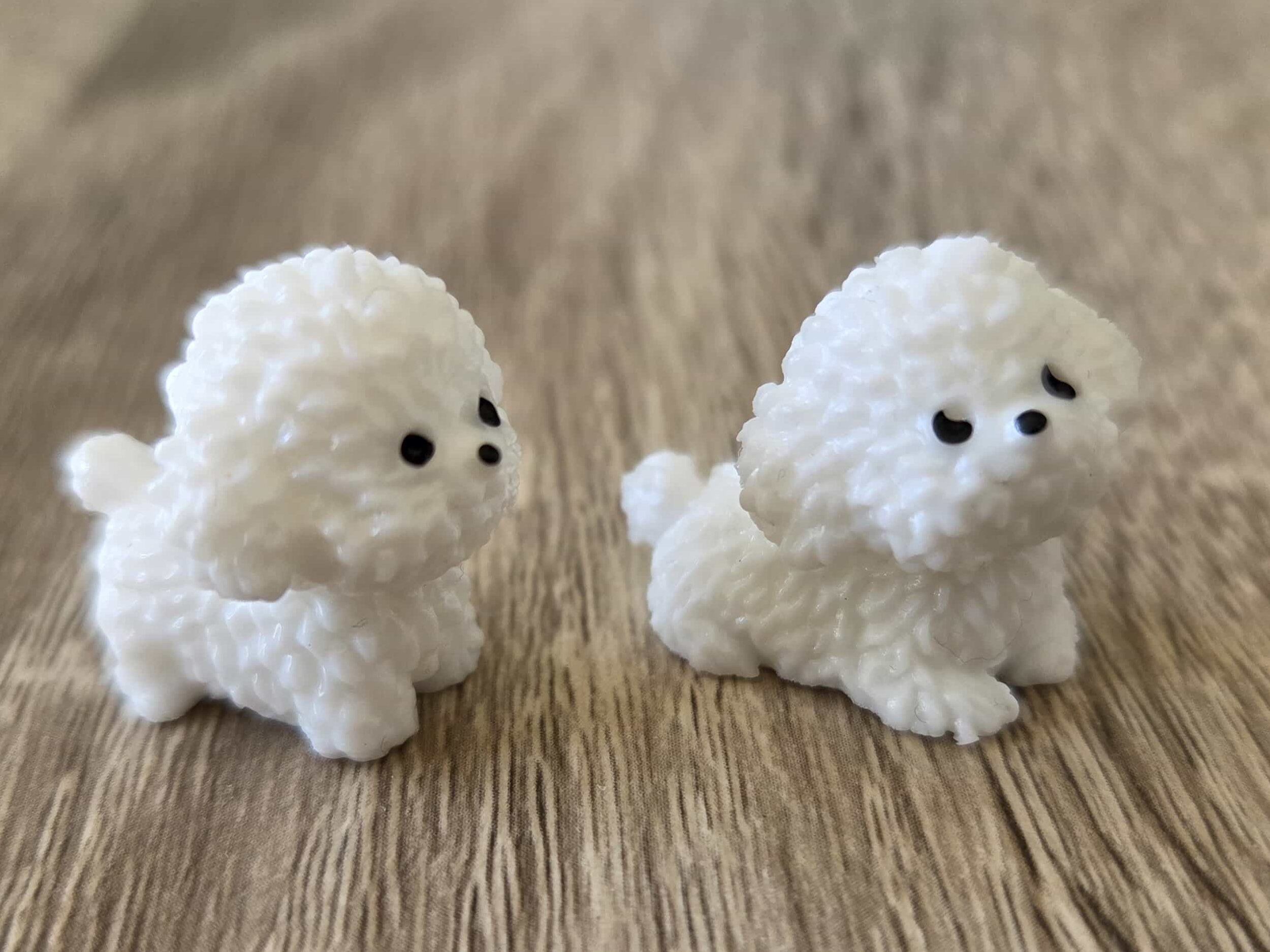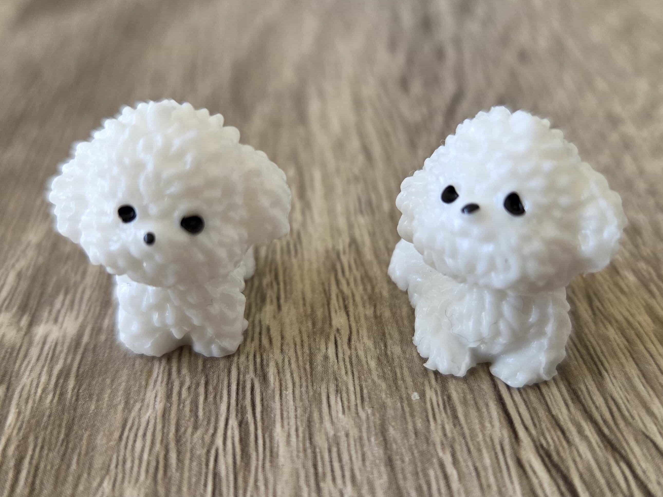 犬種の記載はありませんが、見た目は“白のトイプードル風”。