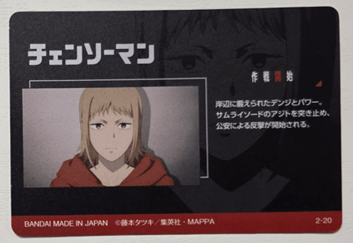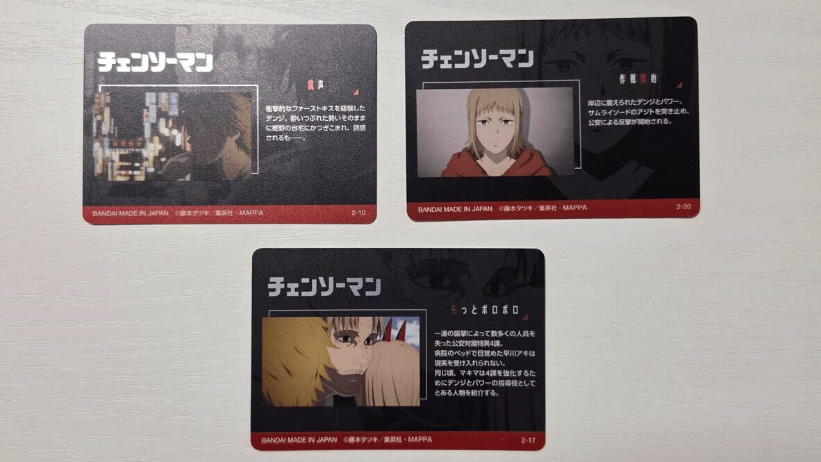 マキマが2枚でしたが、シーンの構図が異なるため重複感はあまりありませんでした。どれもアニメの印象的なカットが採用されており、引いて楽しいラインナップです。