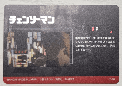 TVアニメ エピソード8 『銃声』のシーンカード。裏面には向き合うデンジのシーンカットがあり実は両面で関係する絵が印象的です。
