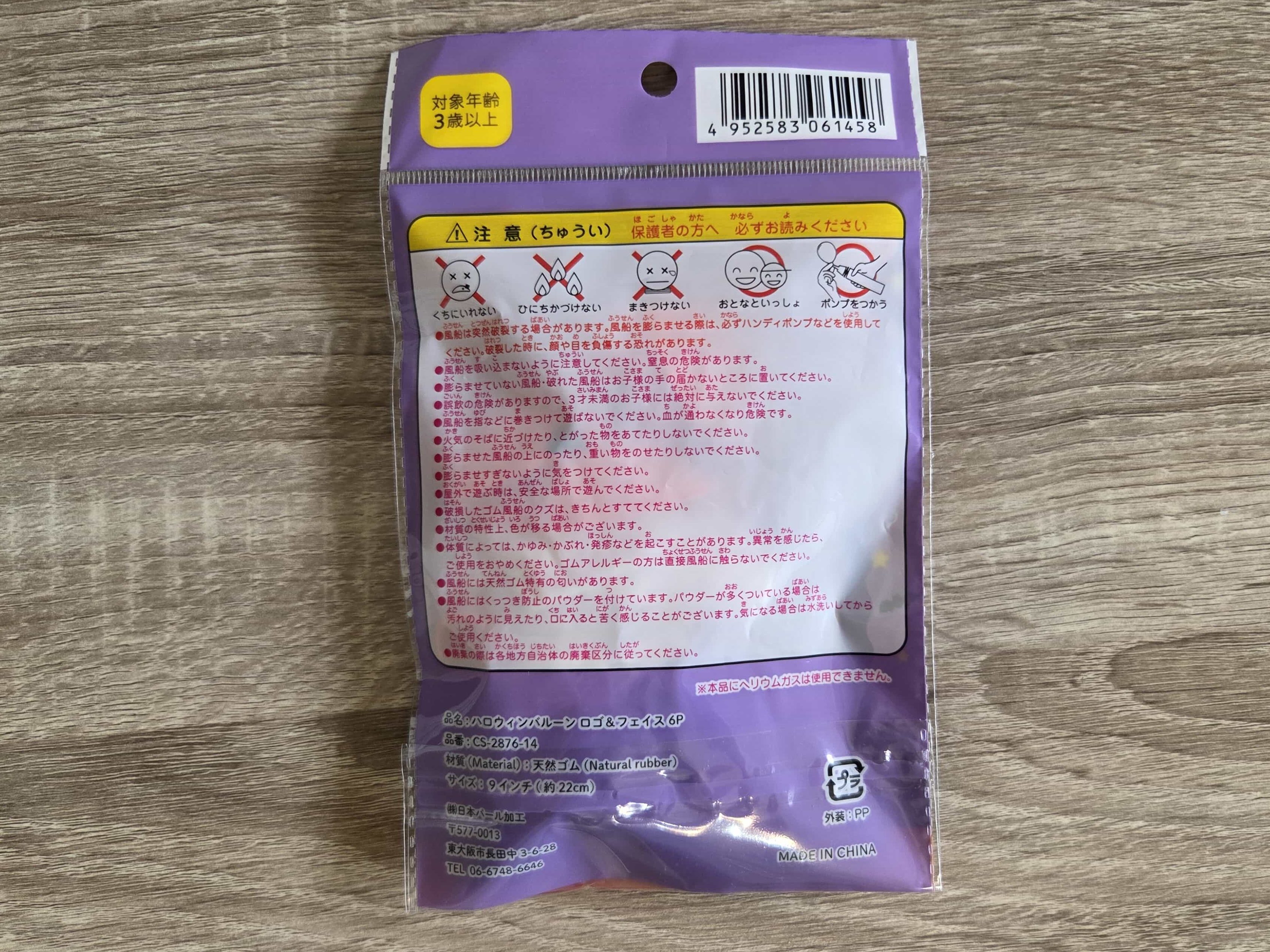 今回購入した「ハロウィンバルーン ロゴ&フェイス 6P」は、