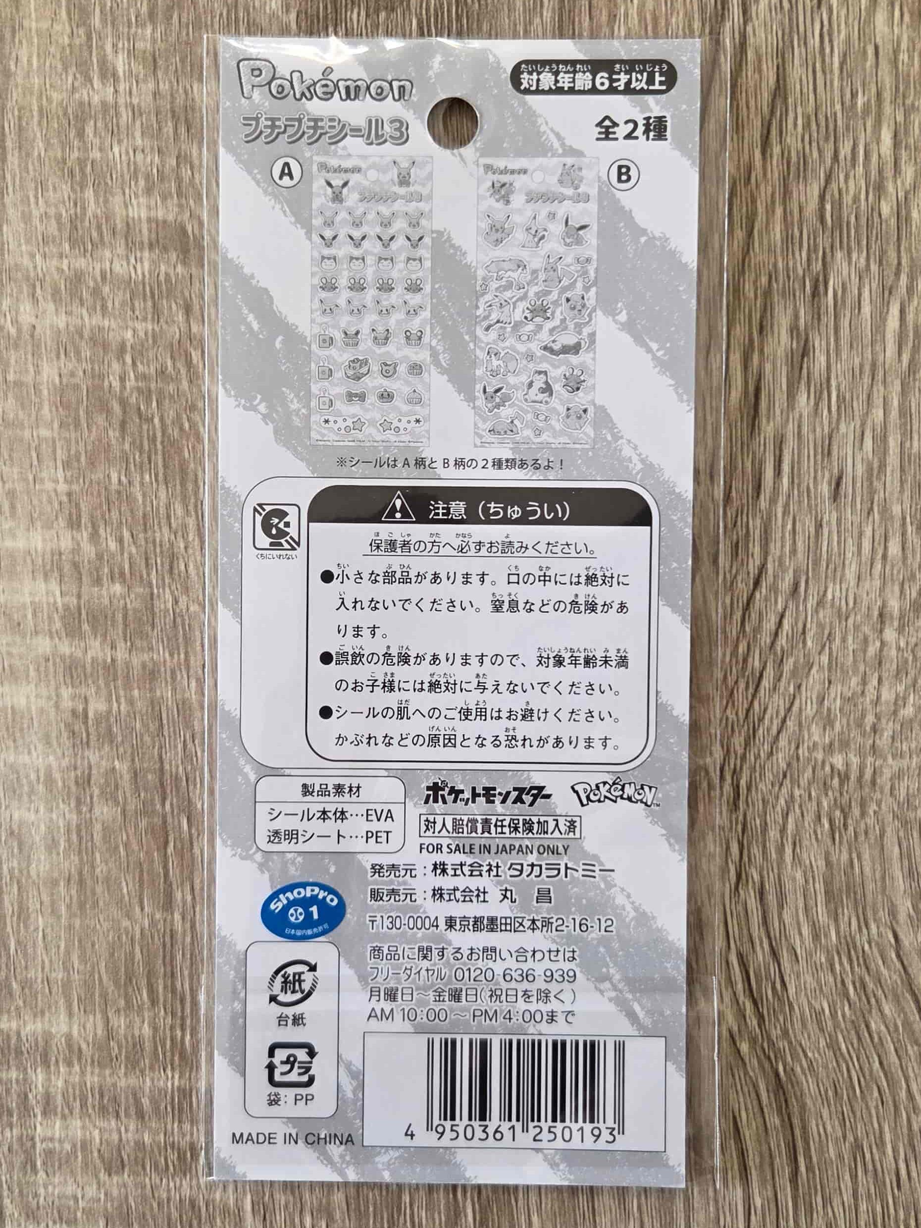 - 商品名:ポケモン プチプチシール3(B柄)